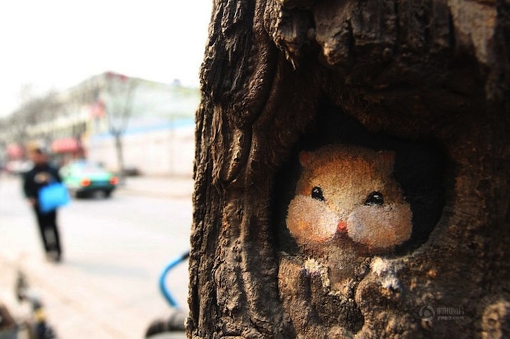 Nuo vasario mėnesio 11 medžių kamienų Jiuzhong gatvėje tapo 23 metų studentės Wang Yue drobėmis. Nutapyti vieną skylę Wang užtrunka dvi valandas.
